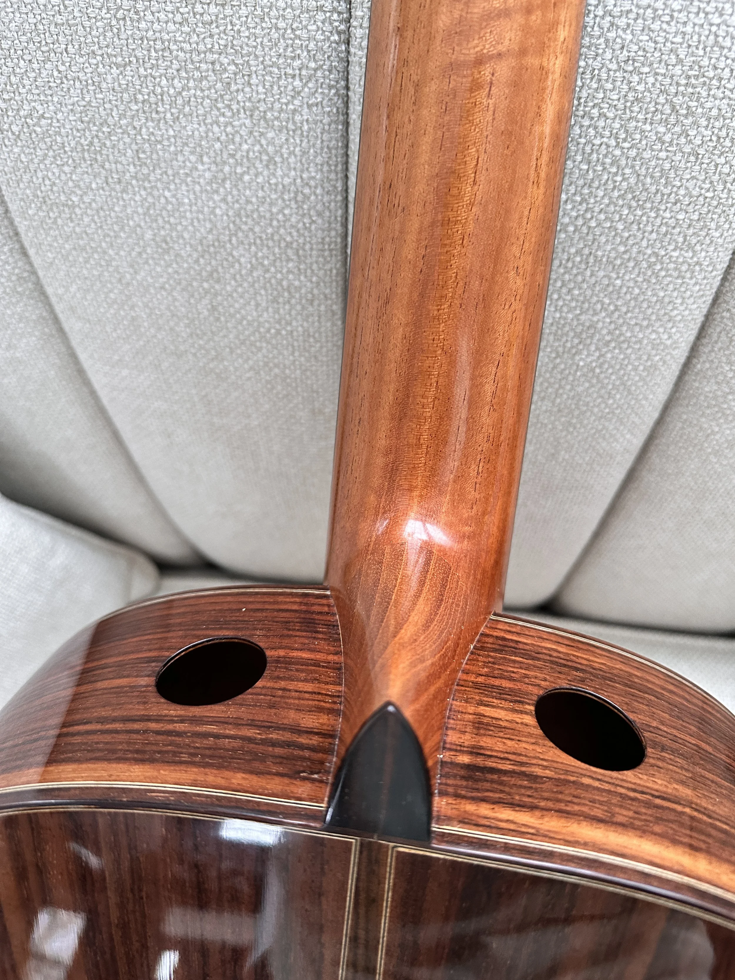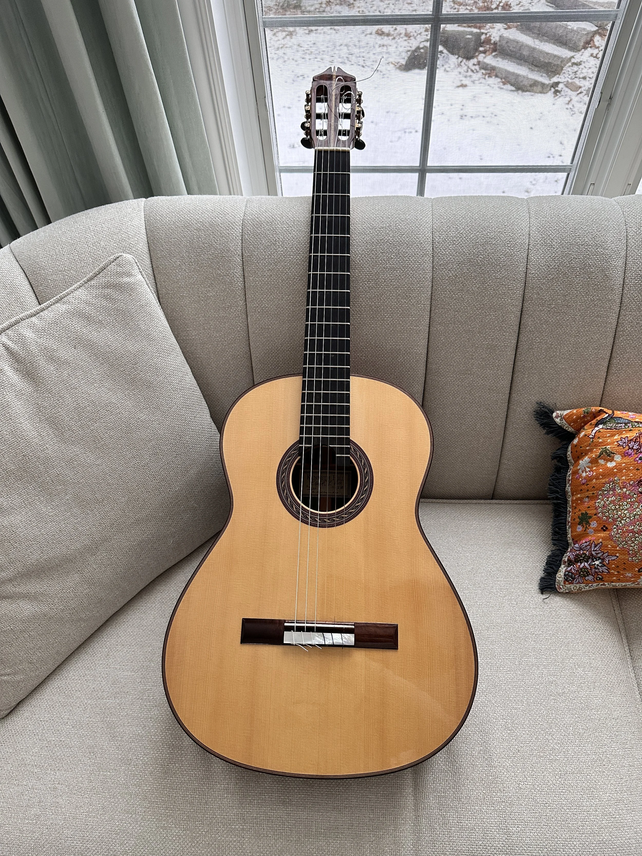 Kenny is a friend of mine and an incredibly meticulous and perfectionist genius. When I met him, he told me that he pursued the path of classical guitar performance before becoming a leading luthier. He used to practice in the cold and harsh winter, much like the martial artists in the old Hong Kong movies, so that in the warm and comfortable concert halls, he would play with all the ease and comfort in the world. When he joined a competition, he lost to David Tanenbaum, the head of the Guitar Department in the San Francisco Conservatory of Music where I studied. You can’t blame Kenny for that! After deciding that performance was maybe not for him, he went on and became one of the leading luthiers. Only a luthier who plays the instrument can truly understand the needs of a player and build a fine instrument like this!!